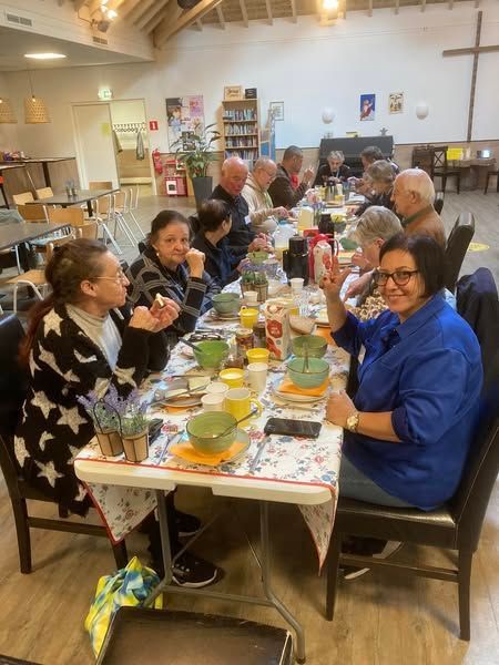 Zondag ☀️ 24 november jl., hadden we weer een gezellige maandelijkse Buurtlunch 🥪 in De Andere Boeg, in onze ruimte in de SSF. André Bijl verzorgde dit keer de overdenking. Hij vertelde over Jezus die na zijn doop 💦🕊naar de woestijn 🌵ging en daar op de proef werd gesteld door de duivel. Jezus had erge honger 🤤 en daarom zei de duivel 😈 tegen hem: ‘Jij bent toch de zoon van God? Zeg dan dat deze stenen 🪨 in brood 🍞 moeten veranderen! Maar Jezus antwoordde: “In de heilige boeken 📖staat: ‘Alleen van brood 🍞 kan een mens niet leven. Maar hij leeft van elk woord dat God ❤️ spreekt.” We dachten daarna na over de vraag: hoe kunnen wij invulling geven aan dat wij niet alleen van eten 🍞 (en drinken🚰) leven? Er werd gereageerd dat wij mogen leven van Gods liefde❤️. En dat wij naar elkaar mogen omzien🤝. Na dit gesprek werden Mirjam en Peter verrast met een cadeau🎁. Een cadeau om uit de delen! André wist van de wens van Peter om Bijbelse dagboeken📚 voor 2025 te willen uitdelen. In samenspraak met de penningmeester overhandigde hij ons een hele doos met dagboeken📚! Deze zijn gelijk aan de bezoekers uitgedeeld. Dank weer aan de vrijwilligers uit buurt en kerk 👍🏻! De volgende maandelijkse Buurtlunch is op zondag 22 december a.s. van 13:00-15:00 uur. We hebben dan een feestelijke warme kerstmaaltijd🎄! Inschrijven tot 15 december a.s. Van harte welkom! 🤗 De wekelijkse Buurtlunch is iedere donderdag van 12:00-13:00 uur.