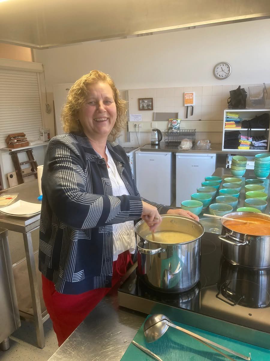 Vorige week hebben we mogen genieten van vers gemaakte tomaten-groentesoep en kippensoep 😋🥣. Hartelijk dank dit keer aan Laura die de kokkin👩🍳was! Daarnaast werden we verrast door drie roetveeg Pieten! Zij strooiden wat lekkers op tafel, náást de soep😄. We zien uit naar de volgende Week Buurtlunch op donderdag 11 december a.s. Deze Buurtlunch is van 12:00-13:00 uur.